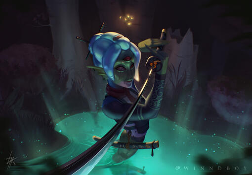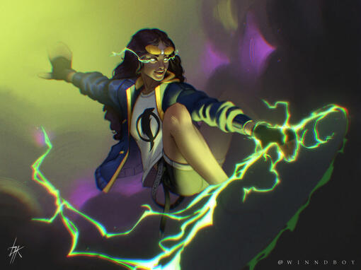 Uma splash art é uma ilustração com o máximo de detalhe e polimento que consigo entregar. Pose dinâmica e luz dramática que criam alto impacto visual.
